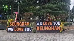 Within the industry, Seunghan received support from SM labelmate Leeteuk of Super Junior and former Day6 member Jae Park, with the latter criticizing the act of protesting with funeral wreaths, calling the practice "disgusting" and suggesting that those responsible should face legal consequences.[31] Others labeled the use of funeral wreaths as a protest method disruptive to the general public and burdensome for cleanup workers.[26]