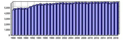 | 2000[44] | 9,492 | 151 | 88[45] | 69 |