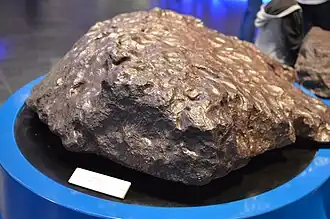 ![]() The largest fragment of the Seymchan meteorite to date on display at the Moscow Planetarium | |