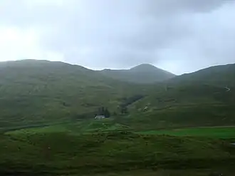 Sgiath Chùil and the Lubchurrin cottage from the north in Glen Lochay