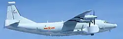 The Shaanxi Y-8 or Yunshuji-8 (Chinese: 运-8; pinyin: Yùn Bā) aircraft is a medium-size, medium-range transport aircraft produced by Shaanxi Aircraft Corporation in China, based on the Soviet Antonov An-12. It has become one of China's most popular military and civilian transport/cargo aircraft, with many variants produced and exported. Although the An-12 is no longer made in Ukraine, the Chinese Y-8 continues to be upgraded and produced. An estimated 169 Y-8 aircraft had been built by 2010.