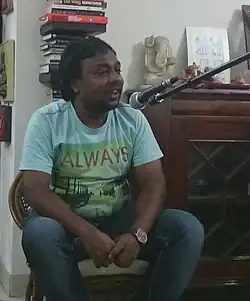 Shabbir Ahmed reciting poetry in a poetry event organized by Poets Corner Group on 14 September 2014 in Mumbai. | |