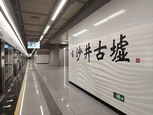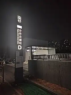 Shajing Ancient Market station (Chinese: 沙井古墟; pinyin: Shājǐng Gǔxū Zhàn; Jyutping: Saa1 Zeng2 Gu2 Heoi1 Zaam6) is a station on Line 12 of Shenzhen Metro. It opened on 28 December 2024,[1][2] and is located in Shajing Subdistrict in Bao'an District.[3][4]