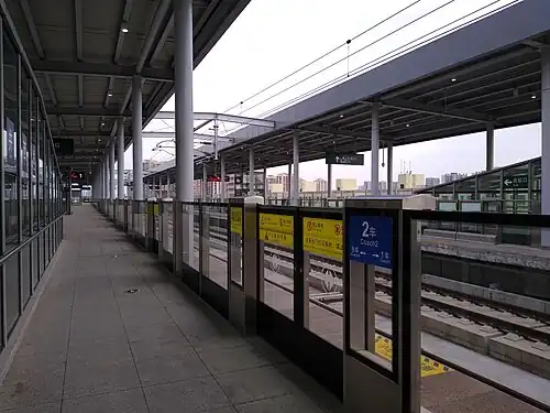 Shajing West railway station (Chinese: 沙井西站; pinyin: Shājǐng Xī Zhàn; Jyutping: Saa1zeng2sai1 Zaam6) is a railway station in Bao'an District, Shenzhen, Guangdong, China. It opened on 15 December 2019.[1][2] It has 4 exits, lettered A-D, situated on the east and west sides of Songfu Boulevard.[3]