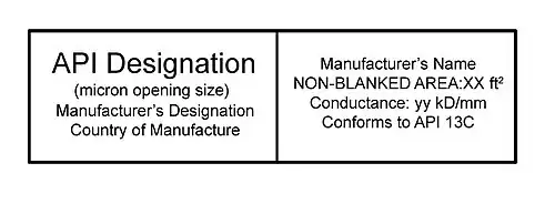 The American Petroleum Institute (API) Screen Designation is the customary identification for screen panels. This includes: