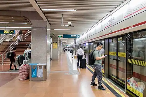 Shanghai Railway Station (simplified Chinese: 上海火车站; traditional Chinese: 上海火車站; pinyin: Shànghǎi Huǒchēzhàn) is an interchange station between lines 1, 3 and 4 on the Shanghai Metro.[6] It is one of the stations where Line 3 and Line 4 share the same tracks and elevated platforms.