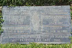 The Tate family burial plot located at Holy Cross Cemetery, Culver City, California, in which Tate, her unborn son Paul, mother Doris, and sister Patti are buried