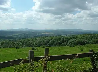 The ridge offers unhindered views across the Severn Valley out west to the Clee Hills, Caer Caradoc, the Long Mynd and on clear days to the hills of Wales. To the east is Kidderminster and the Clent Hills, and the urban West Midlands areas of Dudley beyond. To the north the Wrekin dominates the horizon near Telford, whilst to the south are the Malvern Hills. Although the triangulation pillar that officially marks the summit of the hill is in a field with no public access, next to a small mast, a viewpoint is provided on the Shatterford-Trimpley road with a small layby opposite.