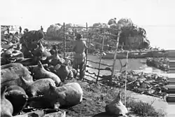 The sheepskin raft is a kind of boat made of a wood frame and aerated sheepskin. A big sheepskin raft can be made from 600 sheepskin bags while small rafts are generally composed of 13 sheepskin bags.[1] Sheepskin rafts are popular along the Yellow River in provinces like Gansu, Ningxia, and Qinghai.[2]
