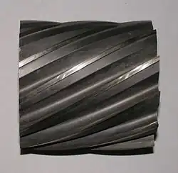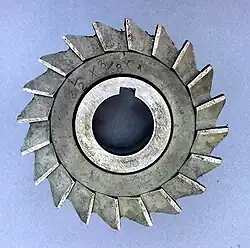 The history of milling cutters is intimately bound up with that of milling machines. Milling evolved from rotary filing, so there is a continuum of development between the earliest milling cutters known, such as that of Jacques de Vaucanson from about the 1760s or 1770s,[4][5] through the cutters of the milling pioneers of the 1810s through 1850s (Whitney, North, Johnson, Nasmyth, and others),[6] to the cutters developed by Joseph R. Brown of Brown & Sharpe in the 1860s, which were regarded as a break from the past[7][8] for their large step forward in tooth coarseness and for the geometry that could take successive sharpenings without losing the clearance (rake, side rake, and so on). De Vries (1910)[8] reported, "This revolution in the science of milling cutters took place in the States about the year 1870, and became generally known in Europe during the Exhibition in Vienna in 1873. However strange it may seem now that this type of cutter has been universally adopted and its undeniable superiority to the old European type is no longer doubted, it was regarded very distrustfully and European experts were very reserved in expressing their judgment. Even we ourselves can remember that after the coarse pitched cutter had been introduced, certain very clever and otherwise shrewd experts and engineers regarded the new cutting tool with many a shake of the head. When[,] however, the Worlds Exhibition at Philadelphia in 1876, exhibited to European experts a universal and many-sided application of the coarse pitched milling cutter which exceeded even the most sanguine expectations, the most far-seeing engineers were then convinced of the immense advantages which the application of the new type opened up for the metalworking industry, and from that time onwards the American type advanced, slowly at first, but later on with rapid strides".[9]
