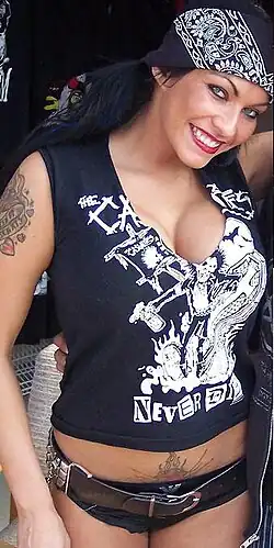 Ariel then increased her ringside presence during Thorn's matches, often interfering in his matches, and Thorn began a scripted feud with Balls Mahoney.[22][23][24] In order to counteract Ariel's interference, Mahoney began bringing in Francine as an equalizer.[25] Ariel made her ECW in-ring debut against Francine on September 26 in an "Extreme Catfight", which ended as a no contest due to interference from both Thorn and Mahoney.[26] The two teams feuded until early October, until Francine was released by WWE.[27] During a match between Thorn and CM Punk, Kelly Kelly interfered in order to help Punk. As a result, Punk won the match, and Ariel and Thorn attacked Kelly after the match.[28] At the December to Dismember pay-per-view, Thorn and Ariel defeated Kelly and Kelly's on-screen boyfriend Mike Knox in a mixed tag team match, after Knox walked out on Kelly.[29] The next week on ECW, Ariel lost to Kelly in a singles match, when Kelly utilized a schoolgirl for the victory.[30]