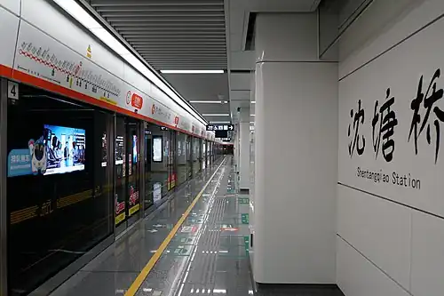 Shentangqiao (Chinese: 沈塘桥) is a metro station on Line 2 and Line 19 of the Hangzhou Metro in China. It is located in the Gongshu District of Hangzhou.[2][3][1] The transfer corridor between Line 2 and Line 19 was opened on November 1, 2022.[4]