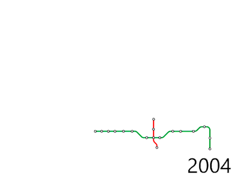 The Shenzhen Metro (深圳地铁) is the rapid transit system of the city of Shenzhen in Guangdong Province, China. The newest lines and extensions which opened on December 27, 2024 put the network at 595.1 kilometres (369.8 miles)[5][b] of trackage. It currently operates on 17 lines with 398 stations.[1] Despite having only opened on December 28, 2004, the Shenzhen Metro is the 5th longest metro system in the world. By 2035, the network is planned to comprise 8 express and 24 non-express lines totaling 1,142 kilometres (710 miles) of trackage.