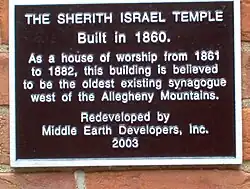 The synagogue was built in 1860 and was an active synagogue until 1882.[4] After that the building served as a warehouse, plumbing supply house, and machine shop.