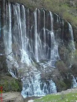 Shevi Waterfall is the largest natural waterfall in the Middle East. The geographical location of the waterfall is E484936 N324745, Zagros Mountains[1] in a village called Shevi at Shahion district in Dezful City, of Iran's Khuzestan Province.[2][3] Shevi Waterfall is located near Salon Mountains and is 65 km from the center of Shahion district and 110 km from Dezful City.[4]