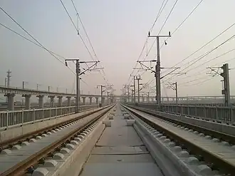 The railway crosses the Yangtze in Wuhan over the Tianxingzhou Bridge, which was opened in December 2009.