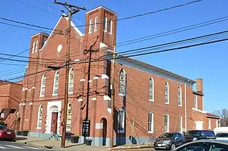 The Shiloh Baptist Church (Old Site) is a historic Baptist church at 801 Sophia Street in downtown Fredericksburg, Virginia. The church is a two-story brick building with predominantly Classical Revival styling, modeled to some degree after the Presbyterian Church of Fredericksburg, with later alterations. The church was built in 1890 for a predominantly African-American congregation, whose origins lie in a mixed-race Baptist congregation founded in 1804. That congregation split about 1815, worshipping in a building at this site, and became known as the Shiloh Baptist Church with the construction of a new building here in the 1830s. In 1849 the large congregation again divided, with most of its white members leaving to form the Fredericksburg Baptist Church at Princess Anne and Amelia Streets. Services were discontinued during the American Civil War, and the existing building was damaged, in part due to abuse caused during military occupation of the city. It collapsed in 1886, and the present building was constructed in 1890 as its replacement. However, due to a schism in the congregation, two separate groups claimed the name "Shiloh Baptist", which was resolved by giving the one at this location the name "Shiloh Baptist Church (Old Site)", which it still retains.[3]