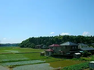 The Shimōsa Plateau covers most of northern Chiba Prefecture. It ranges between 10 metres (33 ft) and 150 metres (490 ft) above sea level.[1] While the Shimōsa Plateau has no set boundaries, it ranges roughly south to north from the Bōsō Hill Range to the lowlands of the Tone River, and east from the Edo River west to the lowlands of Kujūkuri Beach.[2] It runs from Funabashi to Katori.