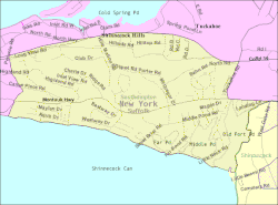 - ^ a b "Geographic Identifiers: 2010 Demographic Profile Data (G001): Shinnecock Hills CDP, New York". United States Census Bureau. Retrieved January 9, 2013.