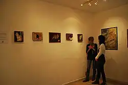 In her early career, she participated in ten collective exhibitions in both Japan and Mexico.[1] Individual exhibitions include Desde mi infancia at the Centro Cultural San Ángel Mexico City (1994), Esencias visible é invisibles at the Galería Coyoacán Mexico City (1995), Corrompidos at the Cafetería el Cafeciofono in Mexico City (1996), Rincón Nostálgico at the Parque Arturo Mundet in Mexico City (1998), Luchando por proteger la sensibilidad at the Casa de la Cultura México-Japón Mexico City (1999), La Búsqueda de mi ser at the Cafetería El Infinito in Monterrey (2001), Venta de obras de Shino Watabe at the Casa Antigua in McAllen, Texas (2005) and Corazón de Piedra at the Museo Histórico de Reynosa in Reynosa, Tamaulipas (2006). In 2011, she had an exhibition of pieces such as violins and images of cats made with recyclable materials at the Tarragona, Bocados del Mundo restaurant in Mexico City. The materials included cardboard, egg cartons and cigarette butts.[6] In 2012, she exhibited Experimentando con gatos at the Garros Galería.[7][8]