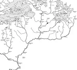 The monsoon was expected in about three weeks and the gorge would then be completely closed with floods so their exploration of the Sanctuary could only be brief. They had difficulty crossing the Rishi – at this point is the confluence of a northern and southern arm at a height of about 13,100 feet (4,000 m).[45][46] To the north the river emerges from a large glacier and it was in this direction they started their survey.[46] They saw for the first time the vast northern face of Nanda Devi – an unbroken sweep of 9,000 feet (2,700 m).[47] They reached the rim of the northeastern encircling mountains at over 20,000 feet (6,100 m) and looked over to the east to the Milam Glacier hoping there might be an alternative way out of the Sanctuary. They also went to the northernmost part of the ring but while they were exploring the foothills of Changabang the weather deteriorated and the Sherpas effectively took the lead when both Europeans were ill. On 24 June the monsoon arrived and they started their retreat, urged on by the Sherpas. In heavy rain they descended the gorge to the Rhamani river in two days. This river had become torrential and they were forced upstream to where they found an easy crossing point and a route back to Dibrughita from where they raced back to civilisation. In a letter Shipton wrote of the Sanctuary "There was a tremendous variety of birds and any amount of game – most of which can never have seen a man, and stared at us incredulously. I was glad we did not have guns – it would have been a crime to shoot them. It was perhaps the most wonderful three weeks of my life, and I shall never forget a moment of it...".[46]