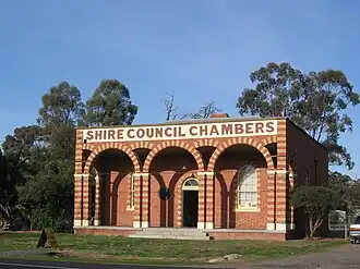 The need for a council at Huntly arose from gold and quartz mining in the area, including alluvial deposits and some deep leads. Huntly was first incorporated as the Road District of Campaspe on 10 March 1861, and became a shire on 13 July 1866.[2] From 1867 until 1977, councillors met at the Council Chambers at 620-634 Midland Highway, Huntly, but subsequently they moved into a new location.