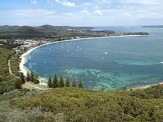 Shoal Bay is the most eastern suburb of the Port Stephens local government area in the Hunter Region of New South Wales, Australia.[1] It is located on the southern shore of Port Stephens, adjacent to the bay of the same name at the entrance to the port.[7] It includes part of Tomaree National Park within its boundaries and, like other suburbs around Port Stephens, is a popular tourist destination, especially in summer months.[8] At the 2021 census the town of Shoal Bay had a population of 1,815 but the population increases significantly during tourist season.[2]
