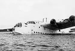 The newly purchased Sunderland Mk III transports, of which there were already 24 in RAF service, were a modification of the standard aircraft. Each Sunderland had a crew of seven and was able to carry between 24 and 30 passengers plus freight. Its load capacity was just under 10,000 kilograms (22,000 lb) and when fully loaded weighed 25,000 kilograms (55,000 lb). It was powered by four Bristol Pegasus XVIII engines and capable of flying up to 340 kilometres (210 mi) per hour and had a range of 2,860 kilometres (1,780 mi).[4] Four standard Sunderlands was converted to transports at Short's premises in Rochester, a process which began in June.[3]