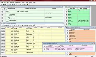 The MIDI Show Control (MSC) standard[2] is an open, industry-wide international communications protocol through which all types of show devices can communicate. MIDI generally is a simplex asynchronous serial data transmission standard with the circuit being an opto-isolated current loop type. MIDI, an acronym for Musical Instrument Digital Interface,[3] was originally designed in the early 1980s as a means of controlling multiple keyboard synthesizers from different manufacturers. Beginning in 1989, a group of interested theatre professionals headed by Charlie Richmond of Richmond Sound Design in Vancouver British Columbia began discussions on the USITT MIDI Forum Callboard Network. This forum included developers and designers from the theatre sound and lighting industry from around the world. They created the MSC standard between January and September, 1990.[4] It was ratified by the MIDI Manufacturers Association (MMA) in January, 1991, and the Japan MIDI Standards Committee (JMSC) later that year, as an extension of the standard MIDI specification. It became an accepted standard in August, 1991. The first show to fully utilize the MSC specification was the Magic Kingdom Parade at Walt Disney World's Magic Kingdom in September, 1991.[5]