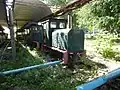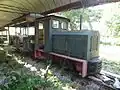 In 1966 four identical locomotives of type DS40/1 were delivered from the German Diepholzer Maschinenfabrik Fritz Schöttler (Diema) with the serial numbers from 2886 to 2889 to Union Development Co. Ltd., Bangkok. Overall Diema built 25 locomotives of this type.[1] These four engines were overtaken by the park railway, numbered as 1 to 4 - not following the order of the serial numbers. After its closure they were still dumped until today at the former, roofed storage sidings. Diema delivered a total of just six locomotives to Thailand, all of them are preserved so far, besides this four mentioned engines two other locomotives still exist at a sugar factory in Ko Kha as a monument.[2] A railway unit consisted of five covered coaches with two axles. In the 1990s they were replaced by a newer construction once more - labeled with "Siam Park Transportation Company".