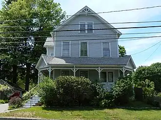 The Sidney A. Hill House is a historic house at 31 Chestnut Street in Stoneham, Massachusetts. The Queen Anne style Victorian wood-frame house was built c. 1895 for Sidney A. Hill, a partner in a shoe manufacturing business. The gables of the house feature Stick-style aprons and bands of cut shingles, and a porch that wraps around parts of the front and side of the house that features turned balusters and posts, and more Stick style detailing.[2]