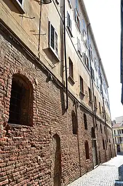 In Pavia, where the memory of the Lombard reasoning and the role of capital of the city characterized the urban identity for centuries,[6] there are some testimonies of the siege, some contemporary, such as the sections of the first walls preserved in via dei Mulini, others, albeit later, very significant, such as the cycle of the stories of Saint Theodore of Pavia frescoed in the right aisle of the church of San Teodoro.