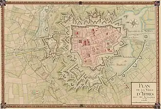![]() Plan of the fortified city of Ypres in 1744 | |||||||