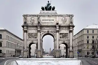 - ^ Michael Brix, "Munich: Victory Arch (Siegestor)", in Regine Dölling, ed. The Conservation of Historical Monuments in the Federal Republic of Germany, 1974:39-40.