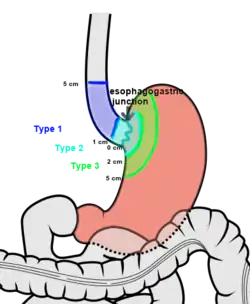 - ^ Siewert JR, Stein HJ. Carcinoma of the cardia: carcinoma of the gastroesophageal junction—classification, pathology and extent of resection. Dis Esophagus 1996;9:173-82.