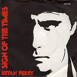 "Sign of the Times" is a song by the English singer and songwriter Bryan Ferry. Recorded whilst Ferry's band Roxy Music were on hiatus, it was released as the second single from his fifth solo studio album The Bride Stripped Bare (1978). The single peaked at number 37 in the UK Singles Chart, but failed to chart elsewhere. The single also features the non-album track, "Four Letter Love" as its B-side. The promotional music video was Ferry performing the song on the first episode of The Kenny Everett Video Show in 1978.[2][3]