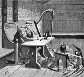She clasped her hands together so hard that Sigurd rose up and asked her not to weep, because her brothers were alive, but their son (Sigmund) was still too young to flee for his life. He said that it was Brynhildr who was to be blamed. Brynhildr had loved him above all other men, but he had been faithful to Gunnarr and kept his oaths.[13] Then Sigurd died and Guðrún swooned. She had clasped her hands together so hard that the cups in the cupboard rang and the geese in the courtyard cried.[14] Brynhildr who heard Guðrún's cries laughed with all her heart:[15]