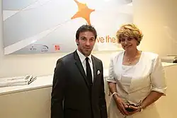 Siham Alawami with football legend, Alessandro Del Piero at the opening of the Save the Dream offices in Turin, May 2013