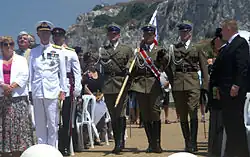 The memorial was dedicated in a ceremony held on 4 July 2013, the 70th anniversary of the crash, in which British, Gibraltarian and Polish government officials participated alongside past and present members of the Polish Armed Forces. Two Polish government ministers, Jan Stanisław Ciechanowski of the Office for War Veterans and Victims of Oppression and Andrzej Krzysztof Kunert from the Council for the Protection of Struggle and Martyrdom Sites, led the Polish delegation. Polish and Gibraltarian clergy also attended, and the ceremony was hosted by the Governor of Gibraltar, Vice Admiral Sir Adrian Johns, and the Mayor of Gibraltar, Anthony Lima. The British military was represented by the Commander British Forces Gibraltar and the Commanding Officer of the Royal Gibraltar Regiment. Johns spoke in his address of "a man who lived and died as a fearless soldier and indomitable champion of the Polish cause," while Bronisław Komorowski, the President of Poland, said in an address read on his behalf at the ceremony that he wished for the memorial to "symbolically point at those highest values which are common to us: brotherhood and freedom."[1]