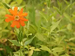 Silene cognata (syn. Lychnis cognata), the orange campion or orange catchfly, is a species of flowering plant in the family Caryophyllaceae, native to eastern and northern China, the Korean Peninsula, and Primorsky Krai in Russia.[1][2][3] In the wild it is found in a wide variety of habitats, from 500 to 2000 m above sea level.[4] It is occasionally available from commercial suppliers, usually under its synonym Lychnis cognata.[5] In Korea its leaves are harvested in the wild and sold in local markets as a food.[6]