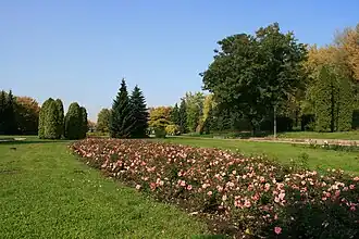 - a hotel complex, the Polish Tourist' Society and the Polish Scouts' Association district centers, restaurants, cafés and show pavilions where flower shows and other exhibits are held.