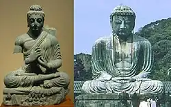 - ^ "Needless to say, the influence of Greek art on Japanese Buddhist art, via the Buddhist art of Gandhara and India, was already partly known in, for example, the comparison of the wavy drapery of the Buddha images, in what was, originally, a typical Greek style" (Katsumi Tanabe, "Alexander the Great, East-West cultural contacts from Greece to Japan", p19)