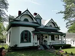 c.1890 | Ottis Cook built this home in 1890 in Gother Brunel motif with Eastlake interior. Mr. Cook owned a large farm which was rented to others for work. After passing from the Cook family, the house served as Toddle Inn, a children's daycare center. It stood empty for years before being purchased restored by the current owners. |