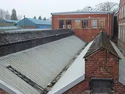 The single storey sheds used for dyeing can be recognised by the louvred ventilators on their roofs.