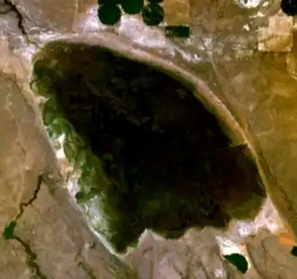 Silver Lake is an intermittent high-desert lake in Lake County, Oregon, United States. It is 6 miles (10 km) east of the community of Silver Lake. It is unknown who first gave the lake its descriptive name. Central Oregon residents attribute it to John C. Frémont, although no proof has been found, and he would not have seen the lake on his first visit to Oregon in 1843.[3] The Klamath called the lake Kalpshi, which may have been derived from the word kalapsh, meaning a decayed log.[3] The name was used because of the petrified wood near the lake.[3]