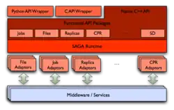 - ^ a b c T. Goodale; S. Jha; H. Kaiser; T. Kielmann; P. Kleijer; A. Merzky; J. Shalf; C. Smith. "A Simple API for Grid Applications (SAGA)" (PDF). OGF Document Series 90.