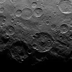 - ^ a b Schulzeck, F.; Krohn, K.; v. d. Gathen, I.; et al. (11 December 2018). "Geologic mapping of the Ac-11 Sintana quadrangle: Assessing diverse crater morphologies". Icarus. 316: 154–166. Bibcode:2018Icar..316..154S. doi:10.1016/j.icarus.2017.12.007.