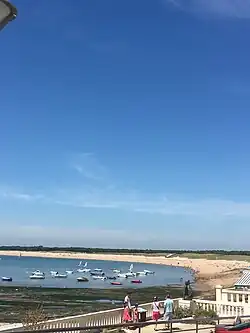 Sion-sur-l'Océan (French pronunciation: [sjɔ̃ syʁ lɔseɑ̃], literally Sion on the Ocean) is a village and seaside resort in the Vendée department in western France. Sion is on the coast of the Atlantic Ocean in front of the island of Yeu (Île d'Yeu). Sion-sur-l'Océan is part of the commune of Saint-Hilaire-de-Riez.
