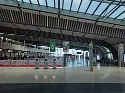 The new terminal, which cost US$306 million, is in line with the "Maurice Ile Durable" concept. Environmental and ecological aspects taken into consideration include using solar energy collected by photovoltaic cells, recovering rain water, integrating nature to the heart of the building, and including thermo-insulated facades to reduce heat gain.[5] The terminal covers an area of 57,000 square meters and is equipped with five boarding gates with airbridges, including one compatible with the large Airbus A380.[6]