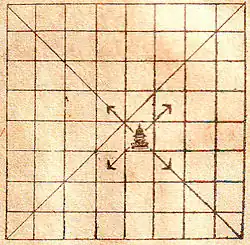 - 1 piece per player. It can move one step in any diagonal direction (as fers in shatranj).